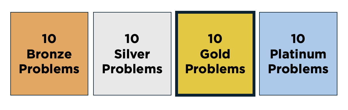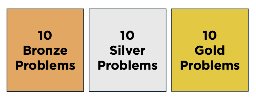 Alternatively, problems might be grouped as ‘bronze’, ‘silver’ and ‘gold’: