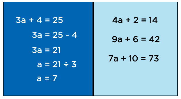 For example, in maths, a teacher might complete the task shown on the left-hand side (below), after which students are given three related tasks to complete themselves. The worked example remains visible whilst students complete the first two tasks but is removed when students are asked to complete the third. They should do this without being able to look back at the first two examples they have already completed. For example, the teacher might ask students to do this on a new page in their jotters.