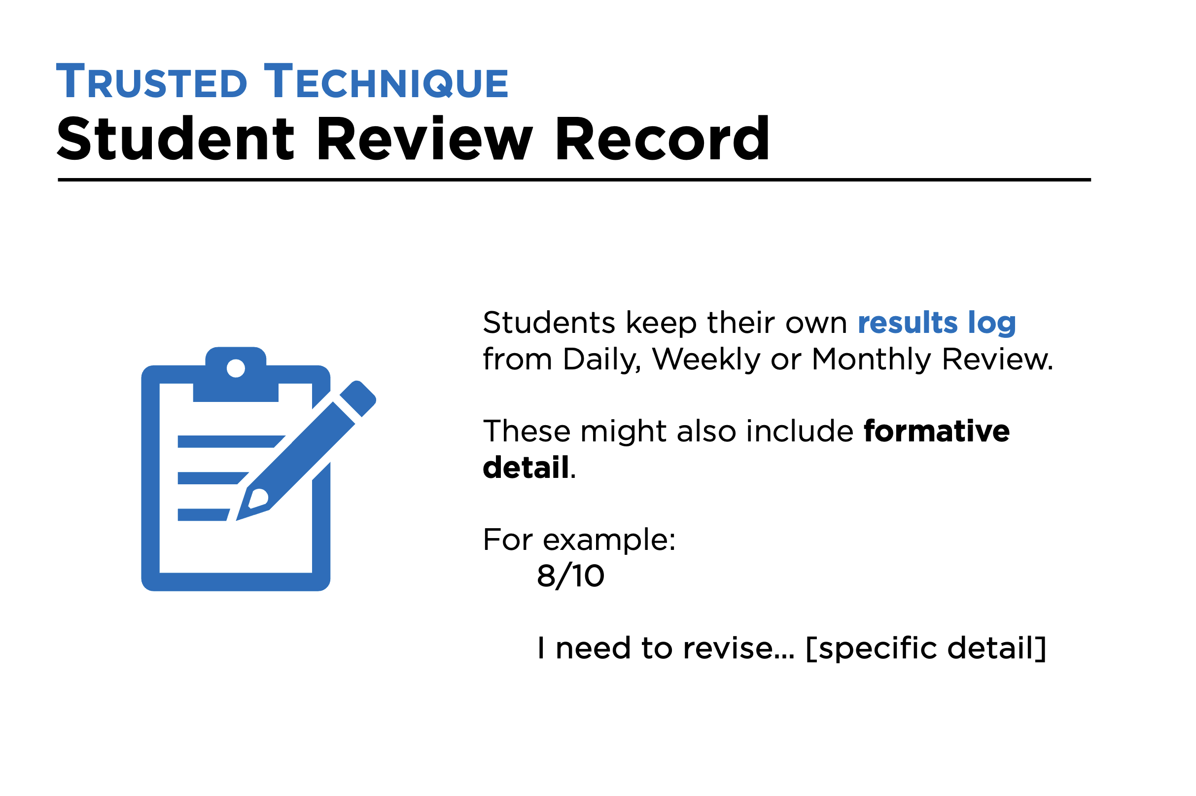 Beyond these reasons, a Student Review Record can help communicate progress with parents. For example, you might ask parents to get into the habit of asking their child about how they got on in today’s daily review activity.