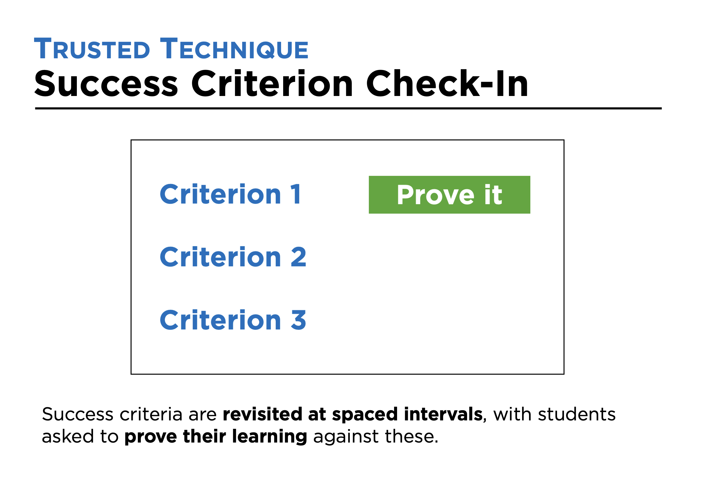 The technique Success Criterion Check-In can be used when a lesson has ‘I Can…’ success criteria.